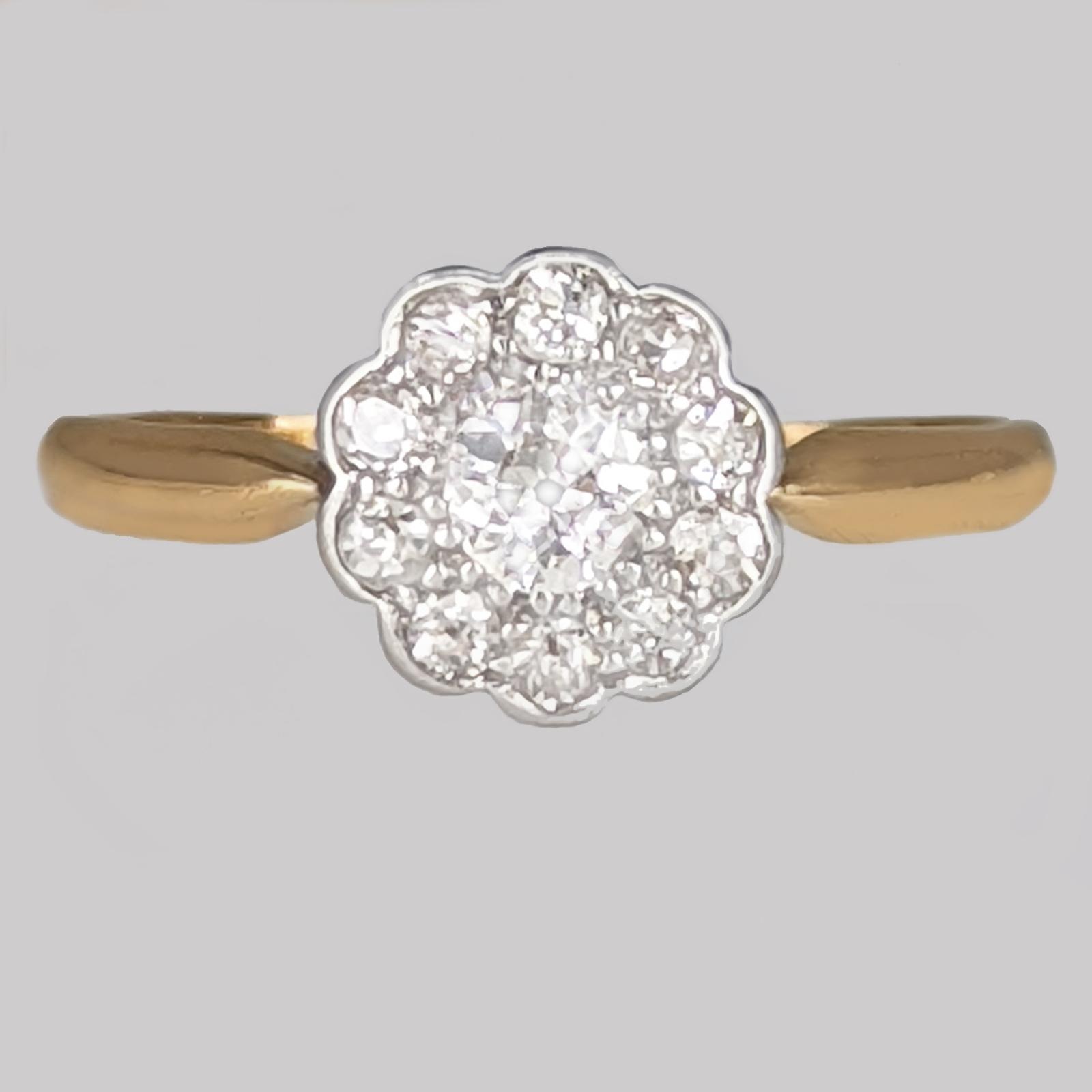 Vintage Old Cut Diamond Cluster Ring 18ct Gold Antique Flower Ring c.1920
