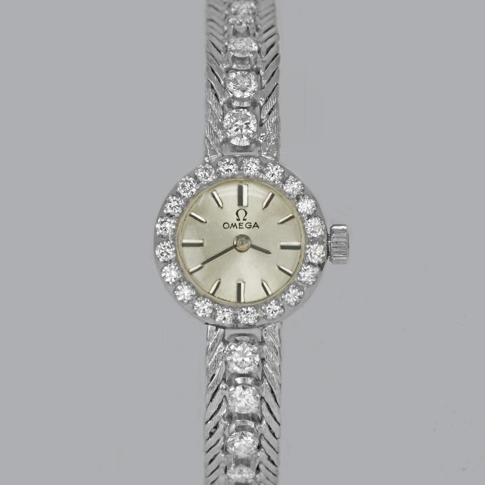 Vintage Omega Diamond Watch 18ct Gold 1960s Manual Wind Ladies Bracelet Watch 3.0ct Diamonds