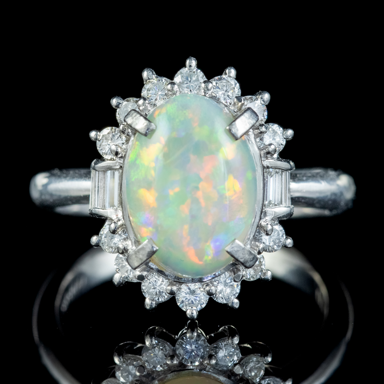 Vintage Opal Diamond Cluster Ring Platinum 1.91ct Natural Opal c.1960