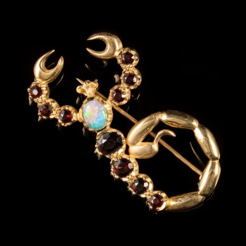 Vintage Opal Garnet Scorpion Brooch 9ct Gold