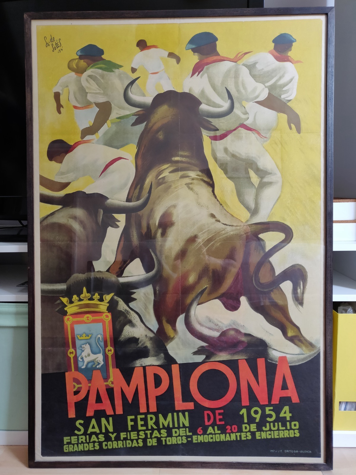 Vintage Original Lithograph Poster Pamplona by Pedro Lozanno De Sotes 1954 Spain