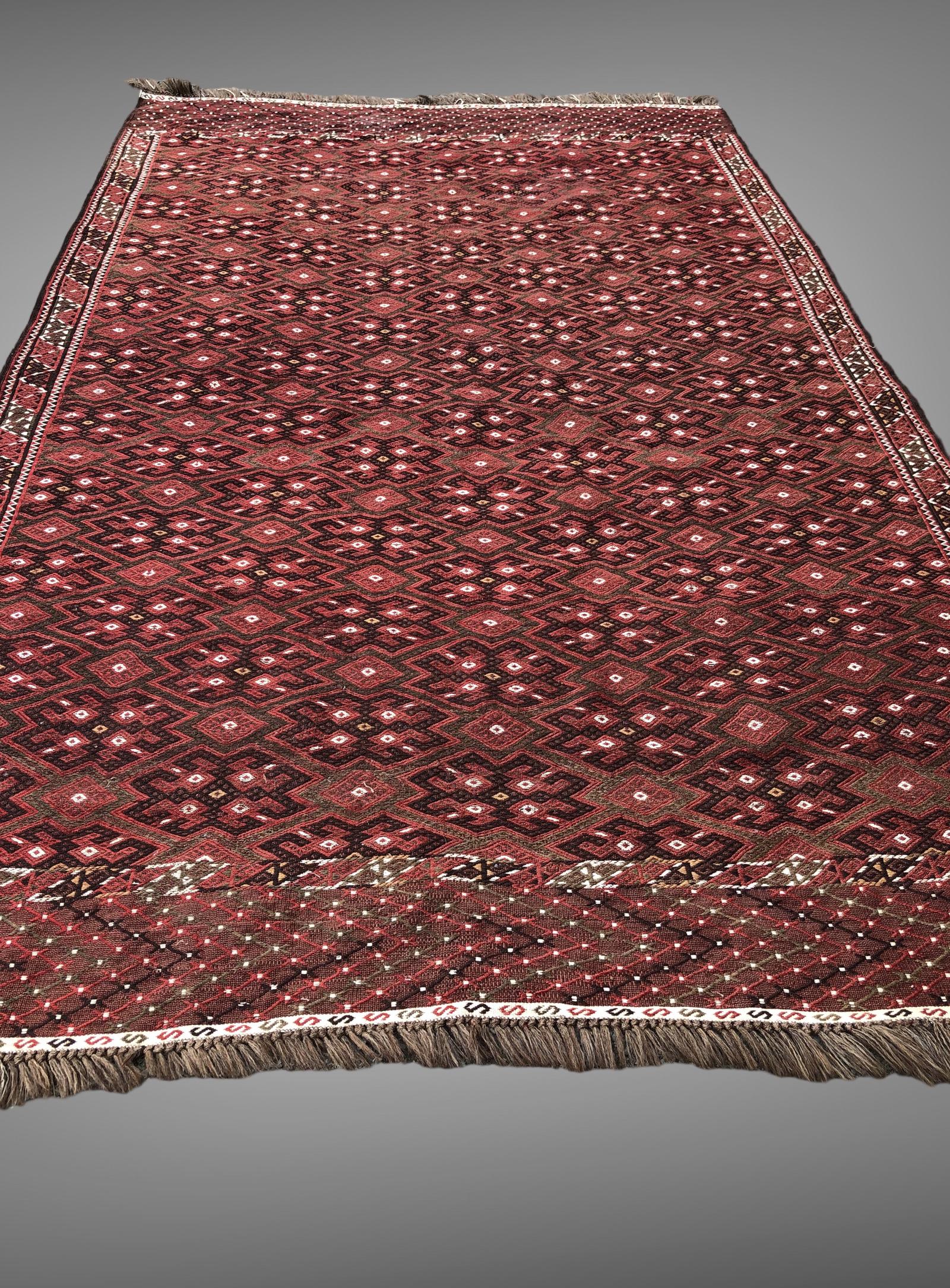 Vintage Original Nomadic Handwoven Rug Large Kilim