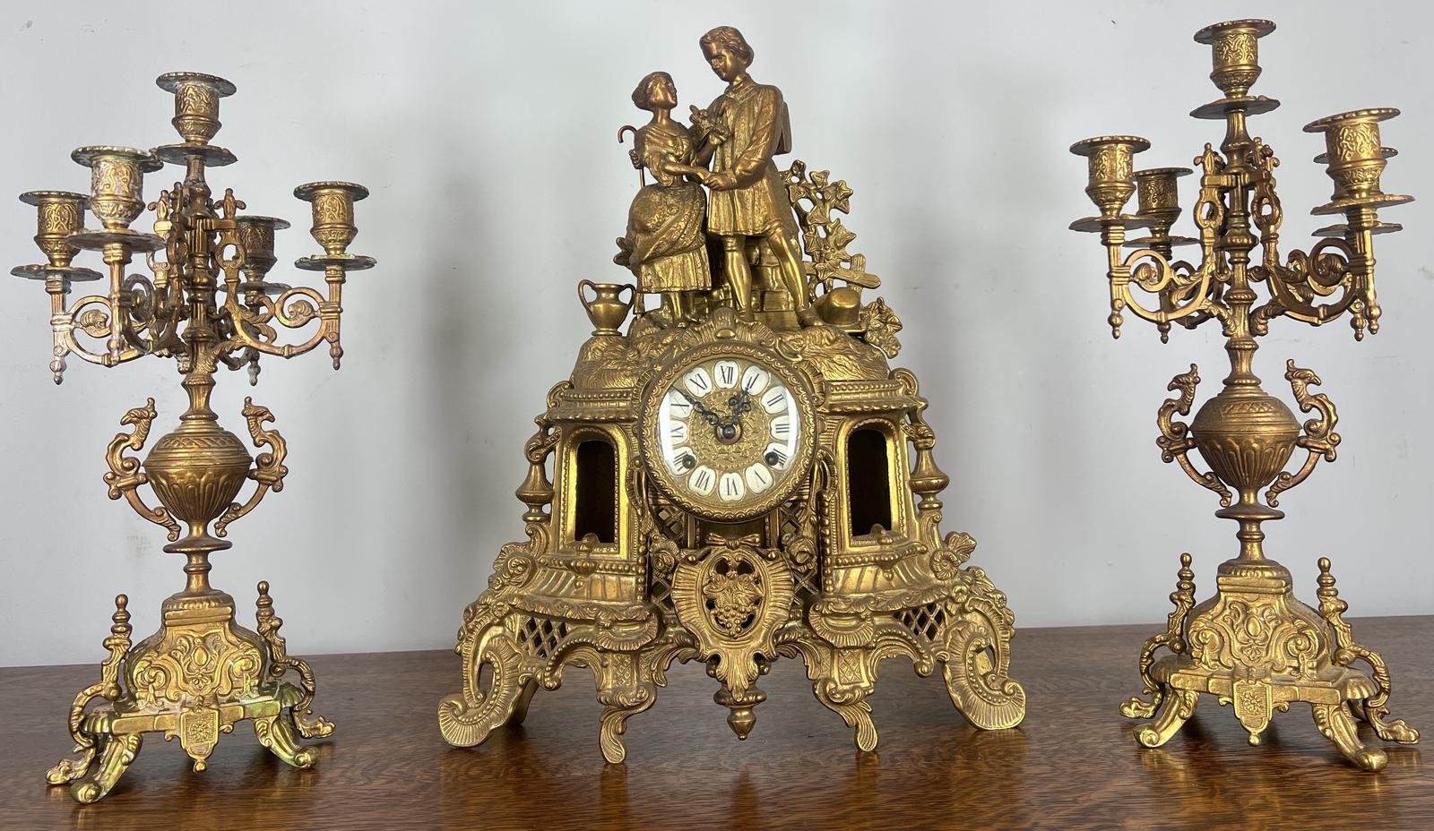 Vintage World has clarified that the Vintage Ornate Brass Mantel Clock & 2 Candelabra Set Rococo Style (LA560274) is genuinely of the period declared with the date/period of manufacture being c.1950