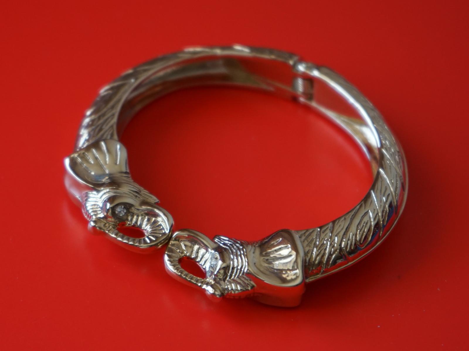 Vintage Ornate Gold Plated Elephant Heads Bangle - Ideal Birthday Gift