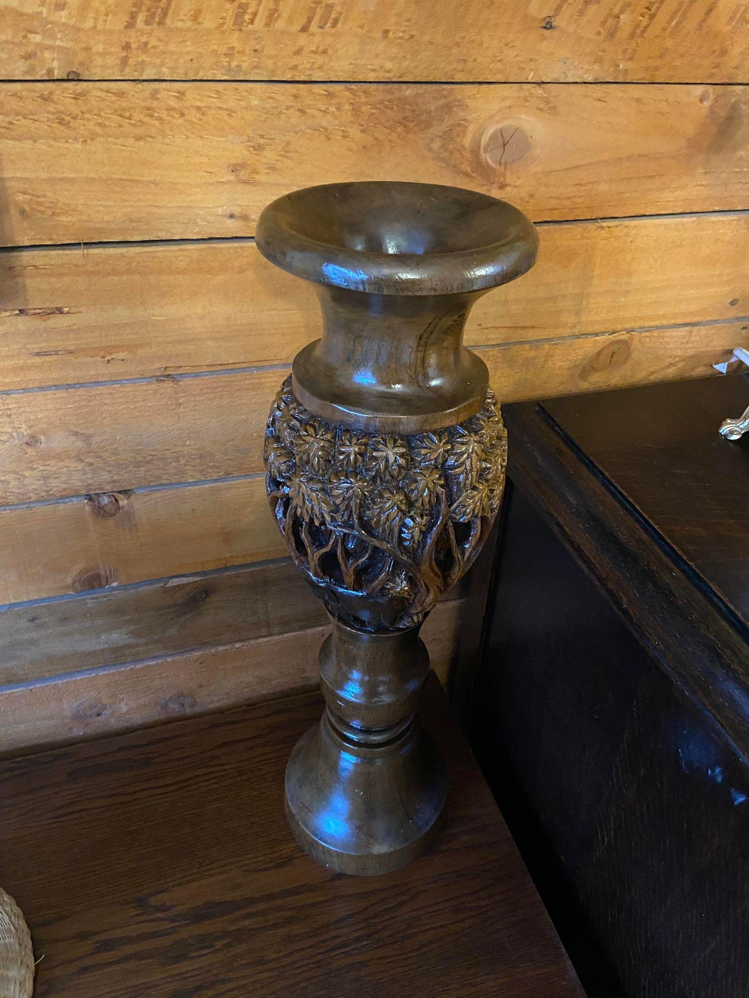 Vintage Ornate Handmade Carved Vase / Featuring Elephants And Trees / Solid Wooden /1970s