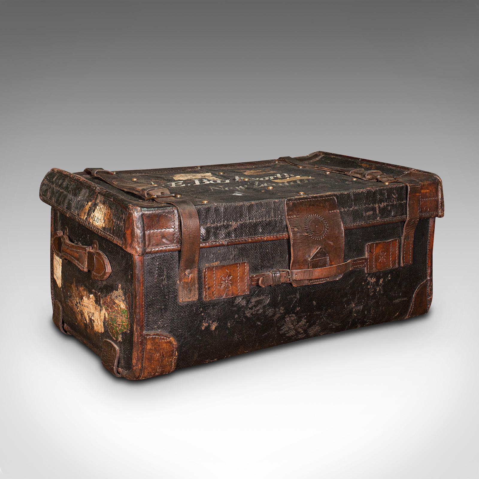 Vintage Overseas Voyage Trunk, English, Leather, Travel Case, Luggage c.1930