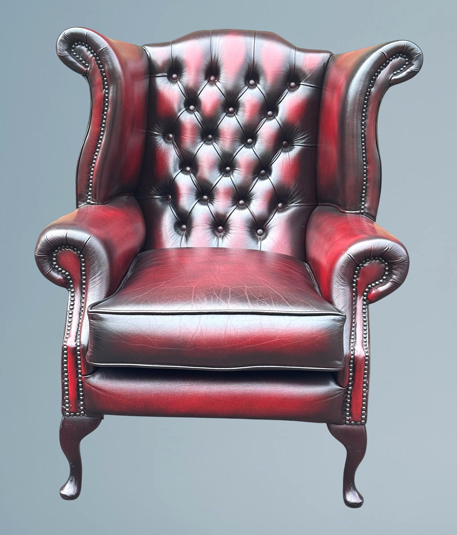 Vintage Oxblood Leather Chesterfield High Back Queen Anne Armchair