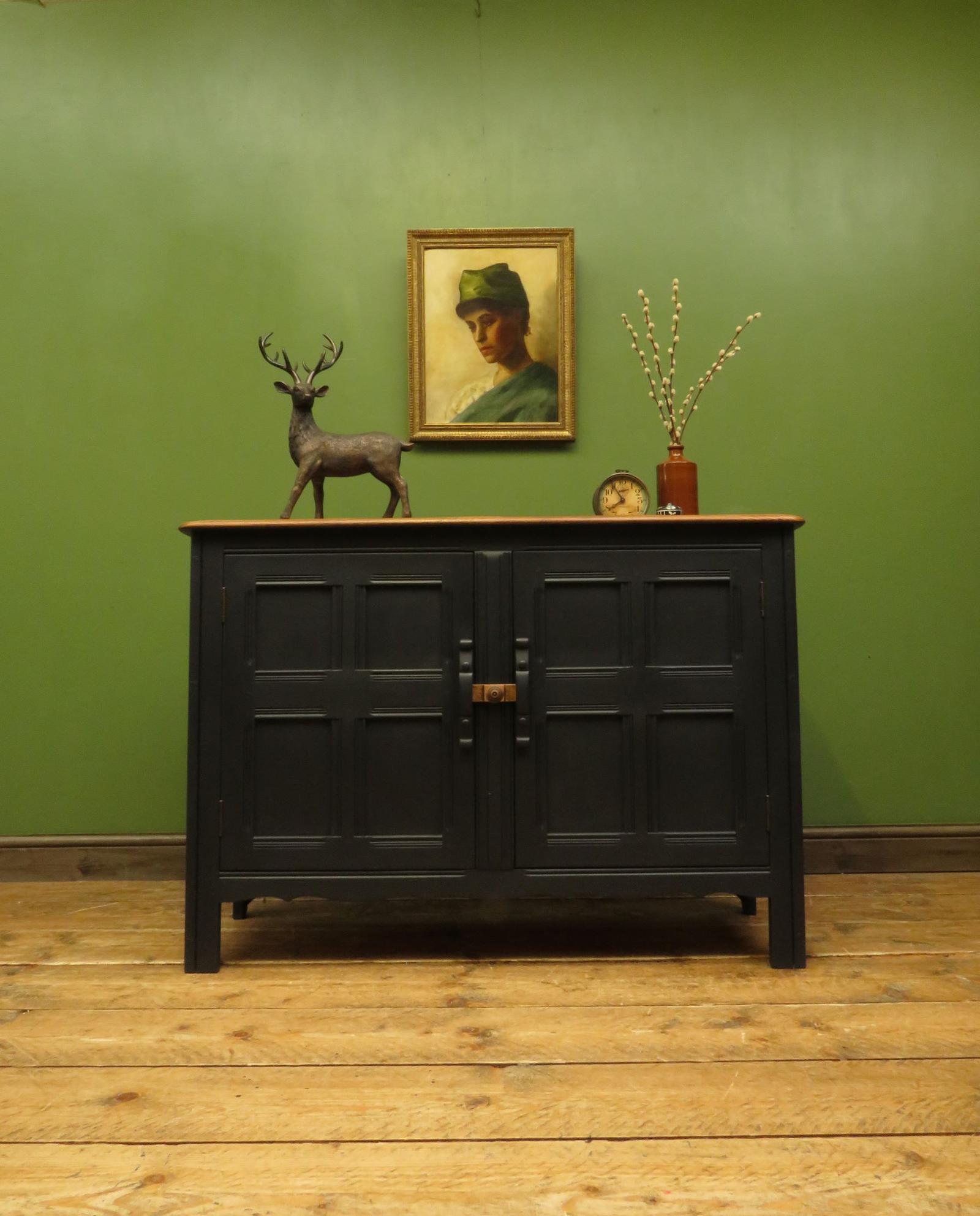 Vintage Painted Black Ercol Sideboard, Natural Top, Mid Century Retro sideboard