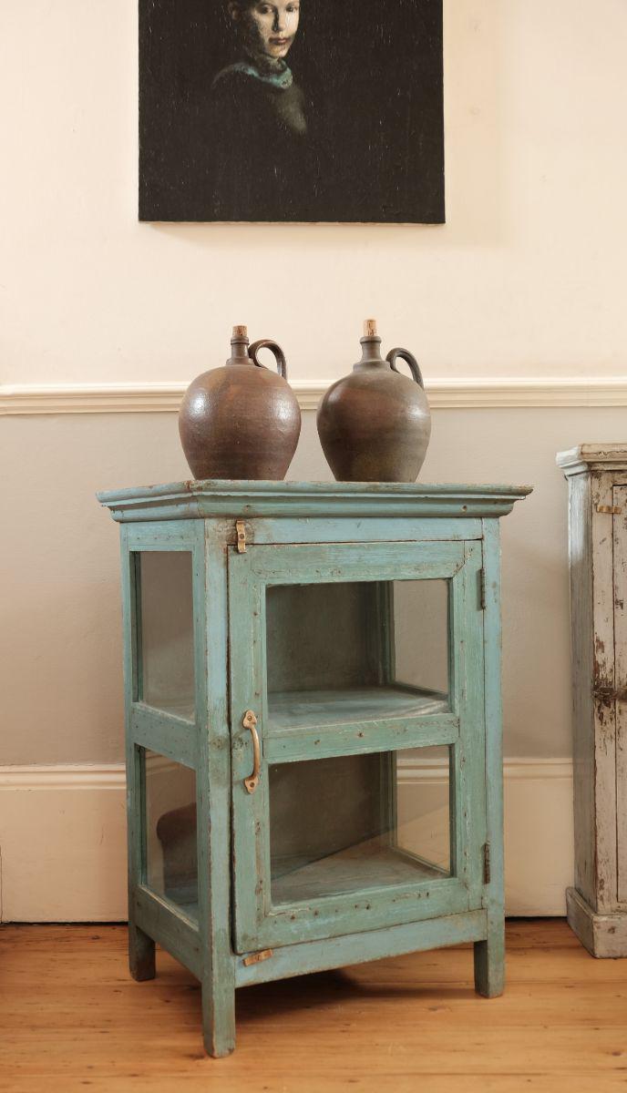 Vintage Painted Glazed Cabinet with Glazed Side Panels