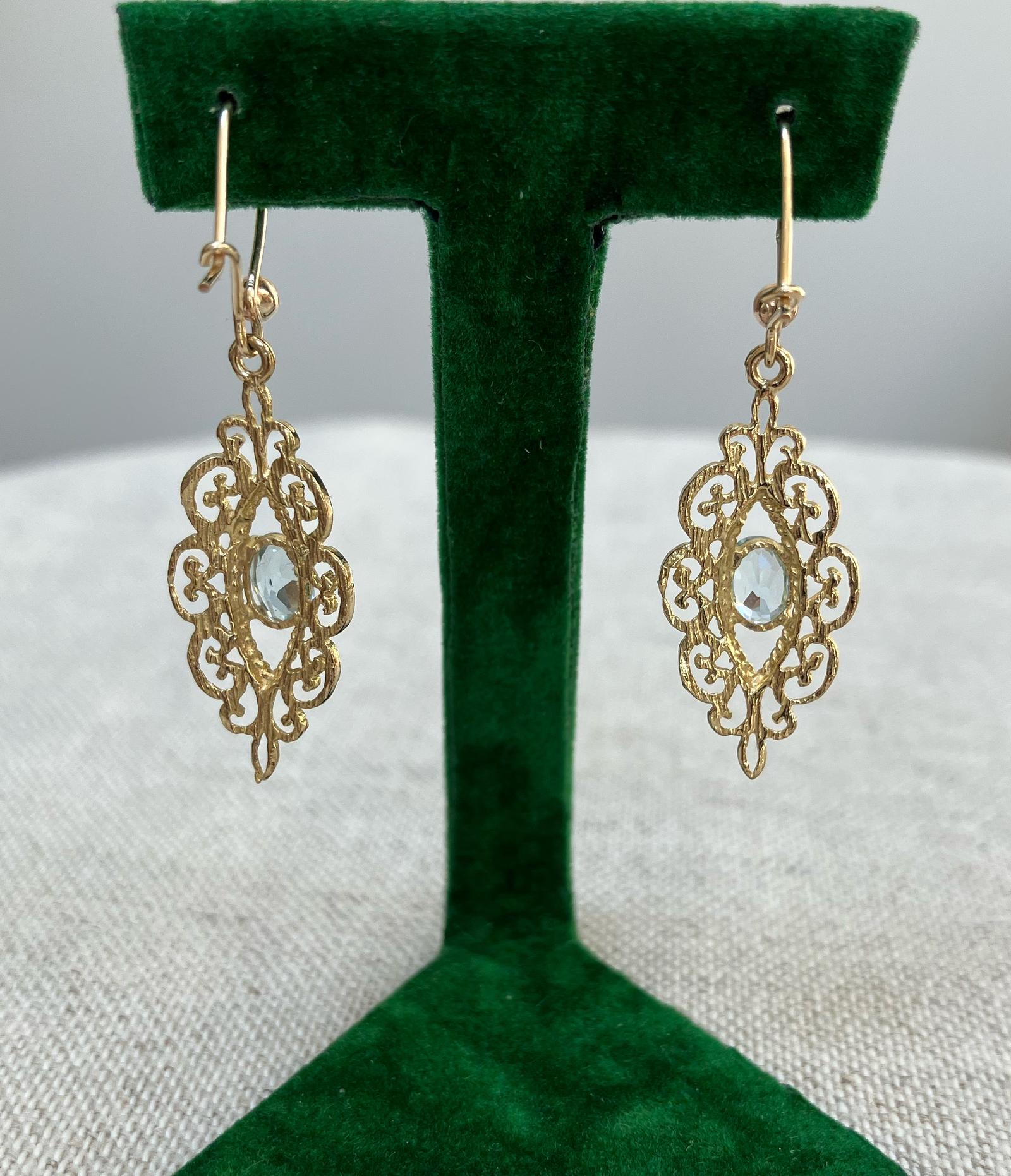 Vintage Pair Of 9ct Gold Aquamarine Drop Earrings