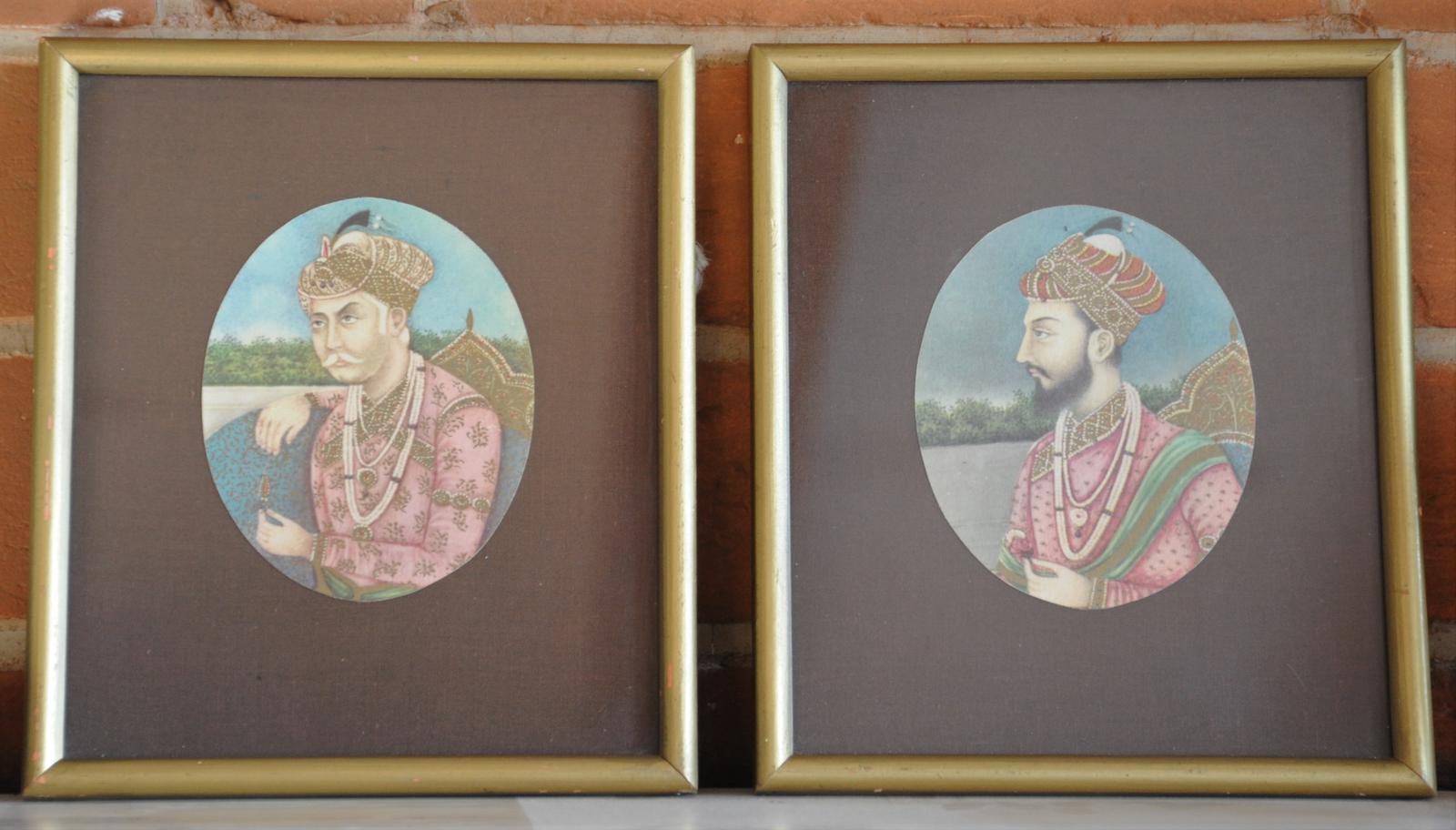 Vintage Pair of Indian Islamic Mughal Emperor Portraits
