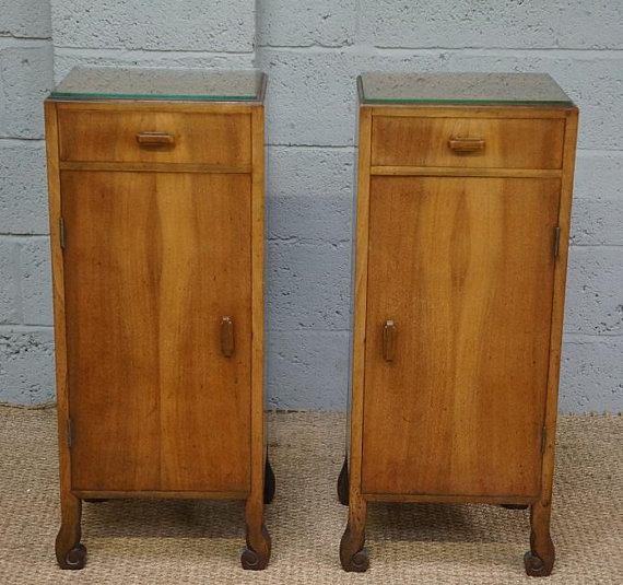 Vintage Pair of Walnut Bedside Cupboards c.1920