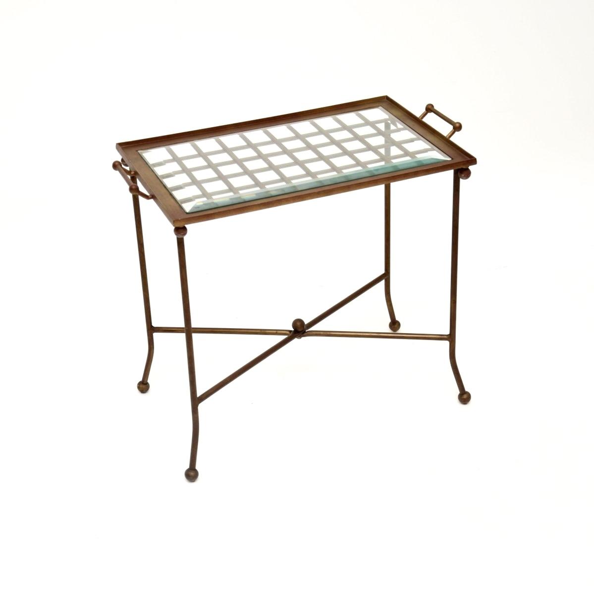 Vintage Patinated Brass & Glass Tray Top Side Table