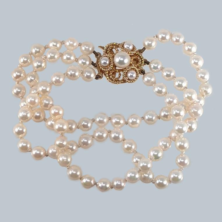Vintage Pearl Bracelet with 9ct Gold Cluster Pearl Clasp 1960s Triple Strand Bracelet