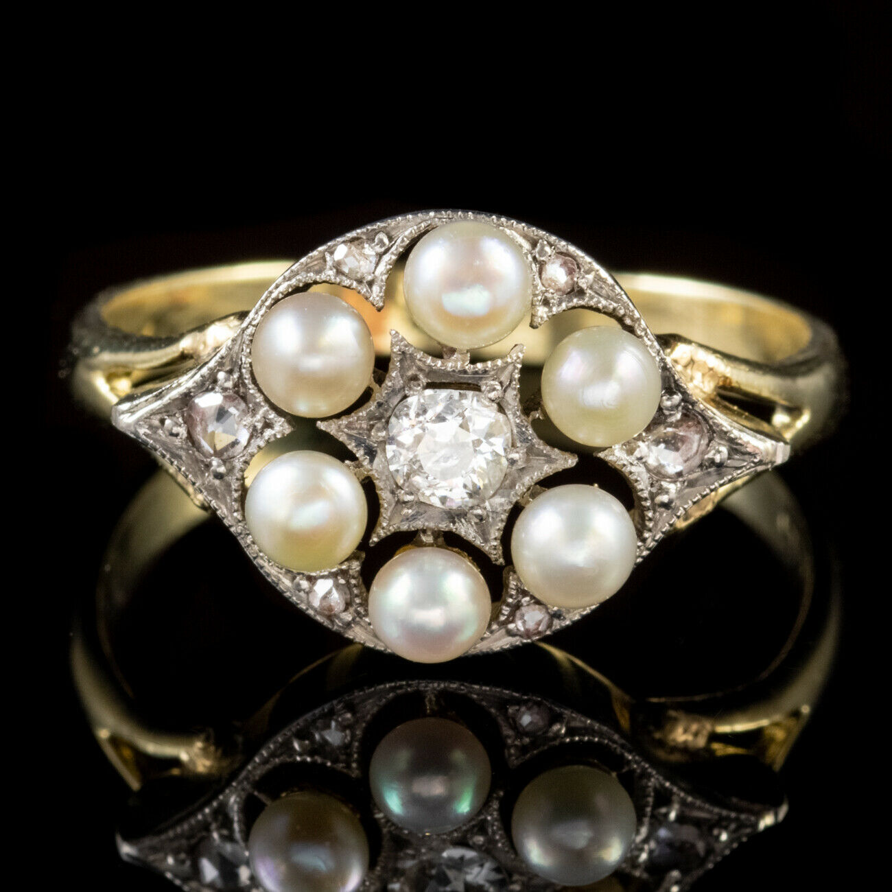 Vintage Pearl Diamond Cluster Ring 9ct Gold c.1975