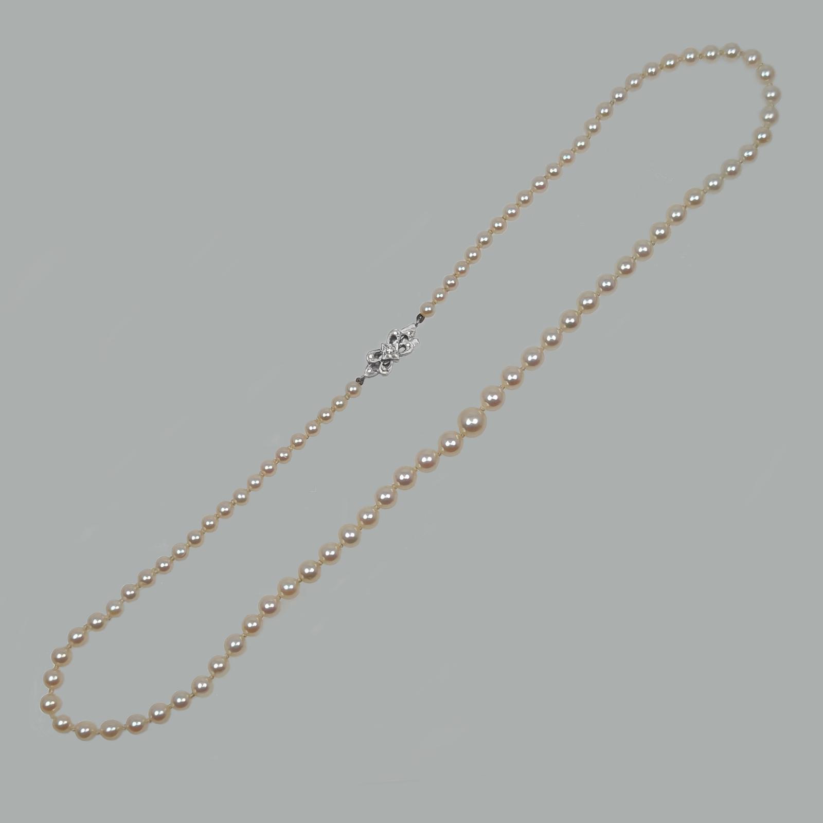Vintage Pearl Necklace 9ct Gold Diamond Clasp 1950s Classic Single Strand Pearls