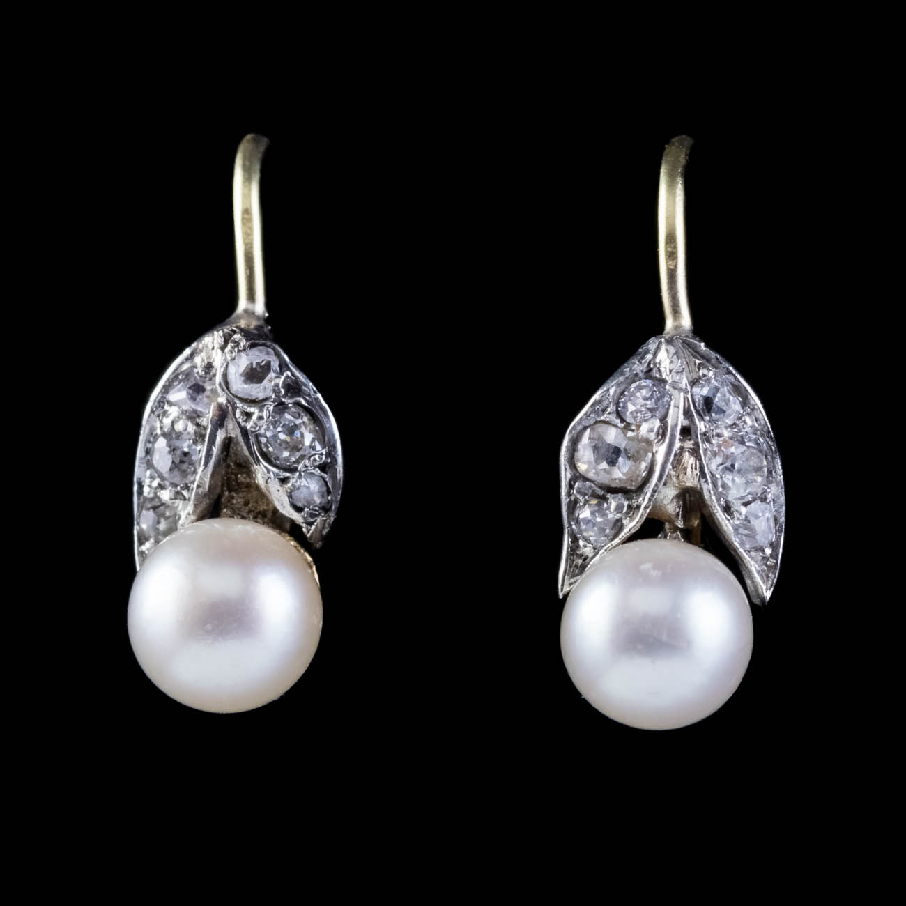 Vintage Pearl Rose Cut Diamond Earrings 18ct Gold