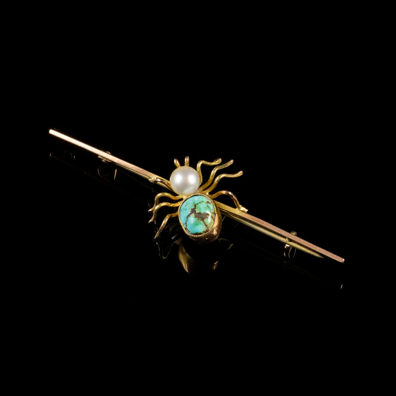 Vintage Pearl Turquoise Spider Brooch 9ct Gold c.1930