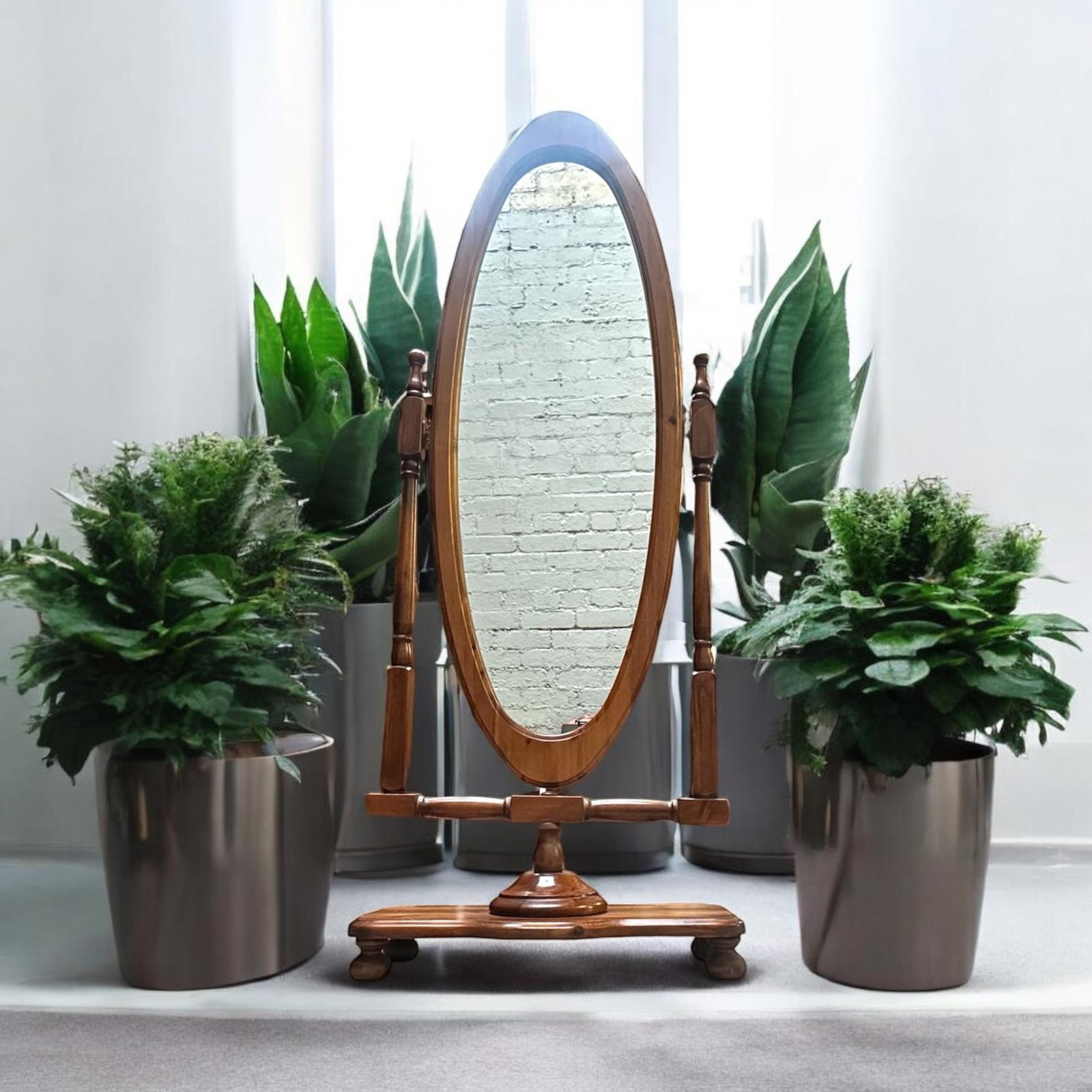 Vintage Pedestal Mirror / Solid Pine / Full Length / Made in England c.1970