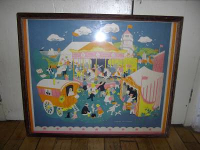 Vintage Peggy Wickham Framed Print 'A Day At The Fair' c.1950`s