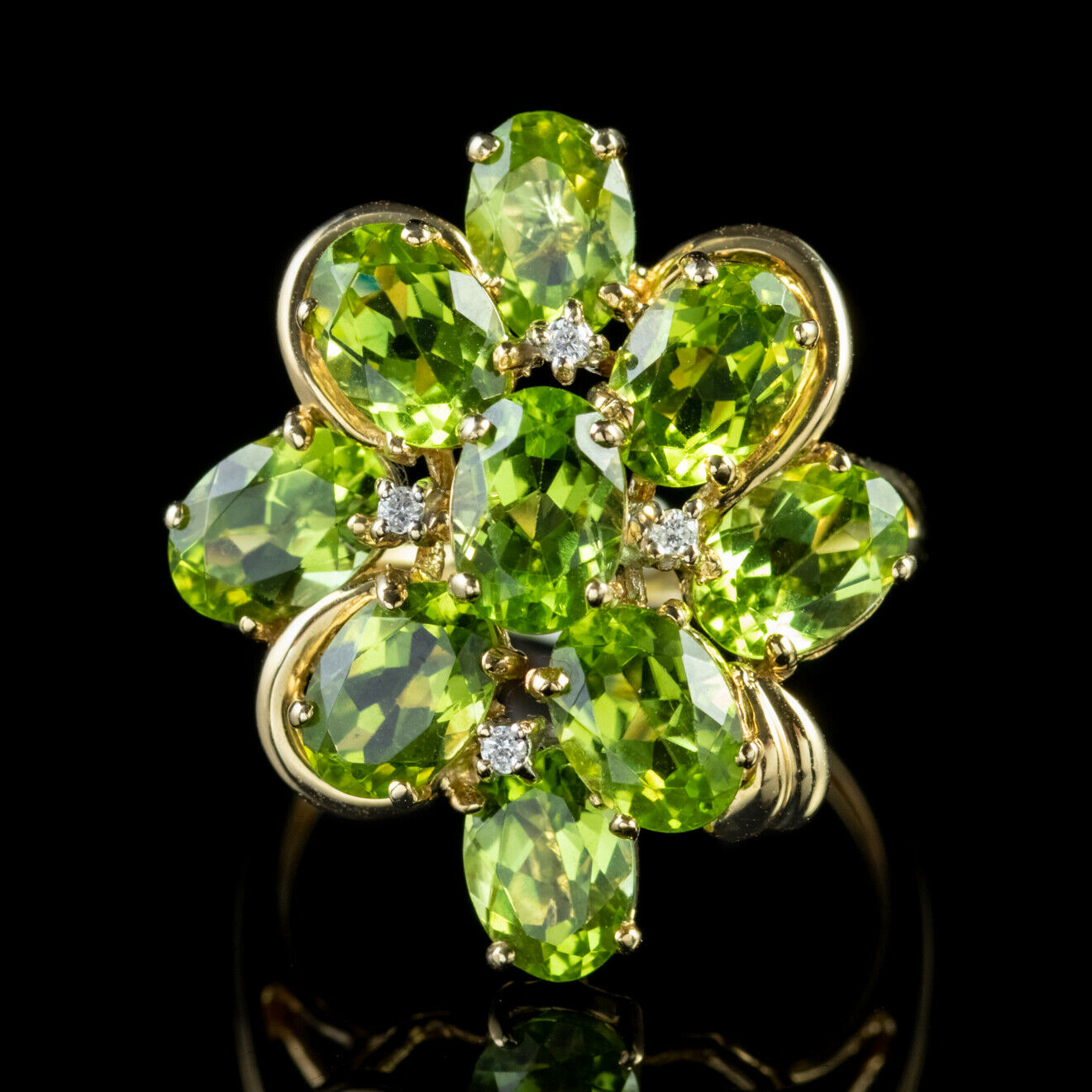 Vintage Peridot Diamond Cluster Ring 14ct Gold c.1960