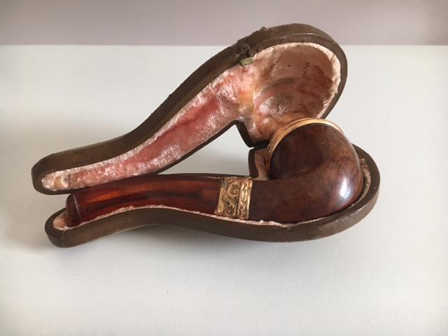 Vintage Pipe with Detachable Faux Amber Mouthpiece in Fitted Case