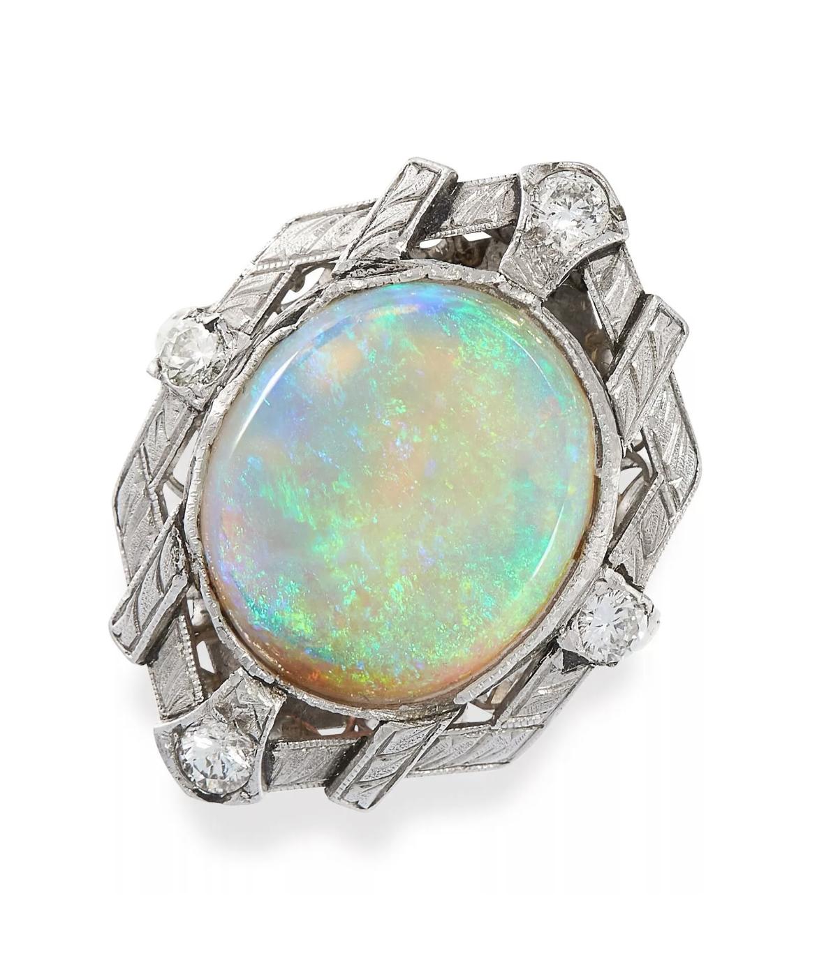 Vintage Platinum Opal & Diamond Dinner Ring