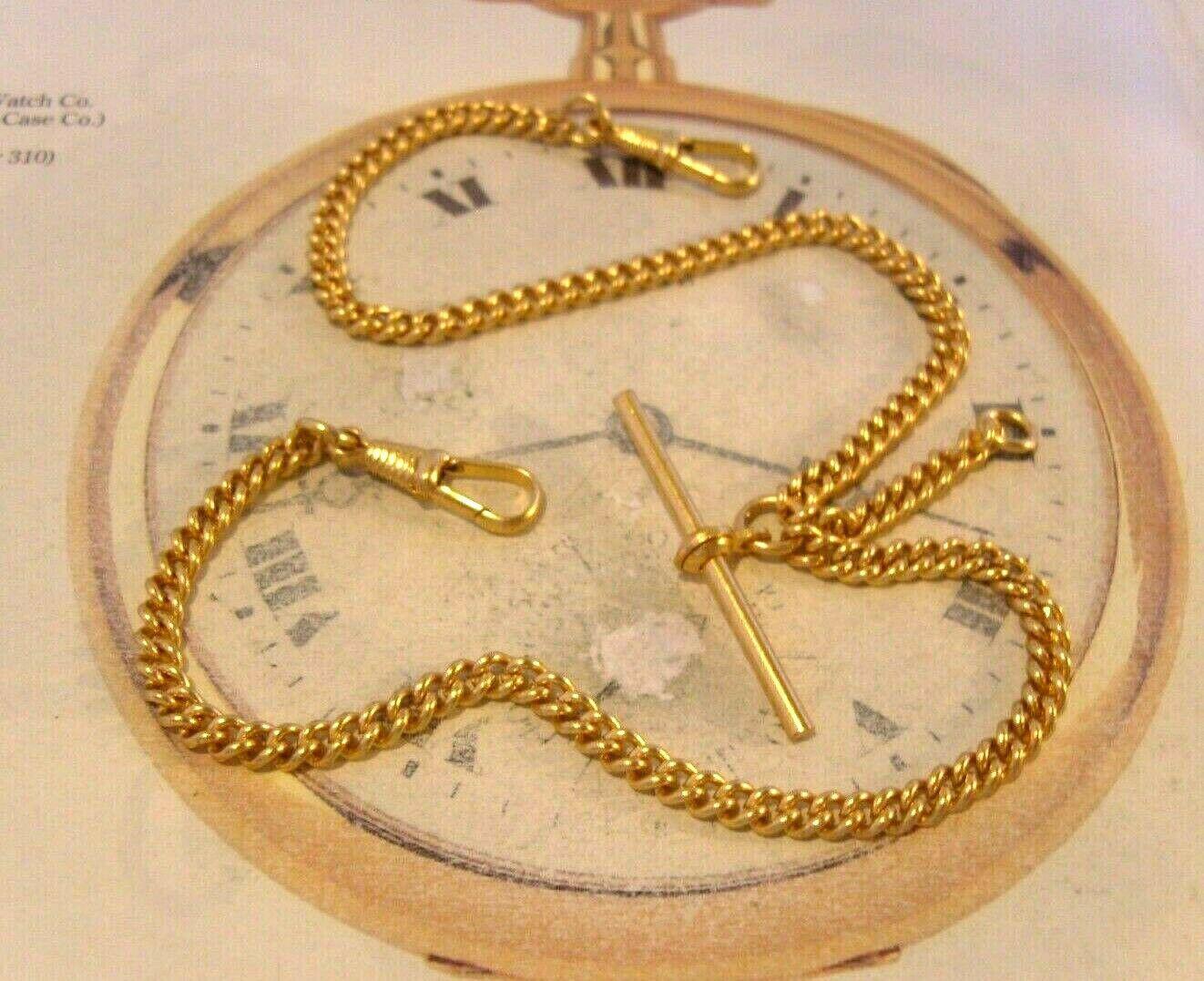 Vintage Pocket Watch Chain 1970 12ct Gold Plated Curb Link Albert With T Bar