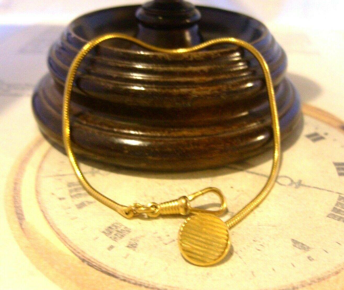 Vintage Pocket Watch Chain 1970s 12ct Gold Plated Albert & Ornate Button Hole Fob