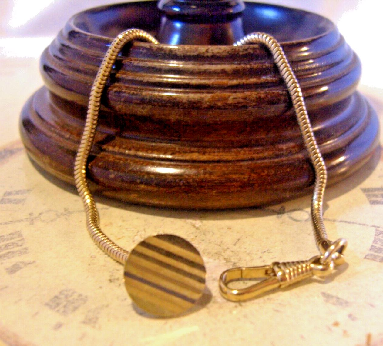 Vintage Pocket Watch Chain 1970s 12ct Gold Plated Albert With Ornate Button Hole Fob