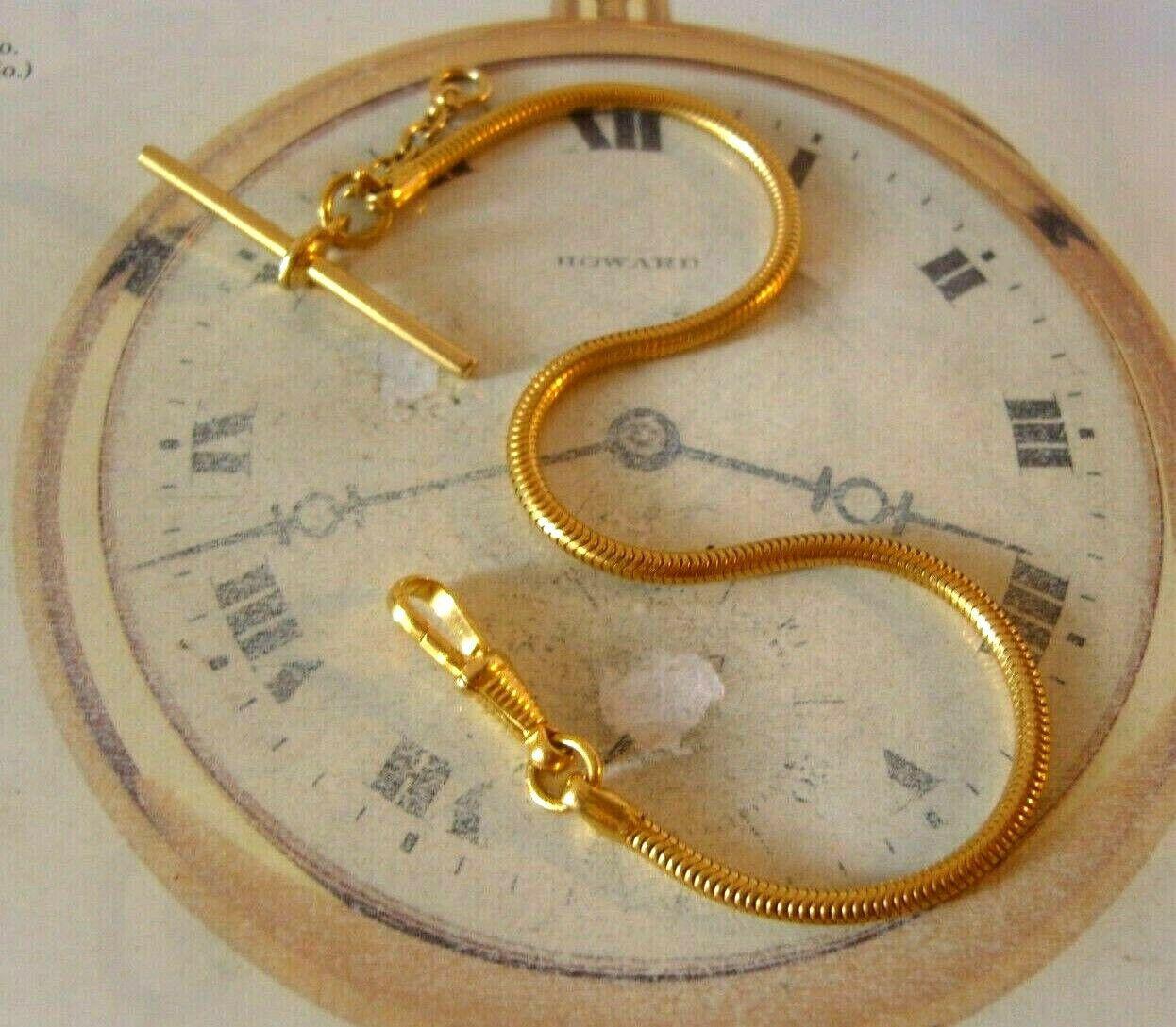 Vintage Pocket Watch Chain 1970s 12ct Gold Plated Snake Link Albert & T Bar