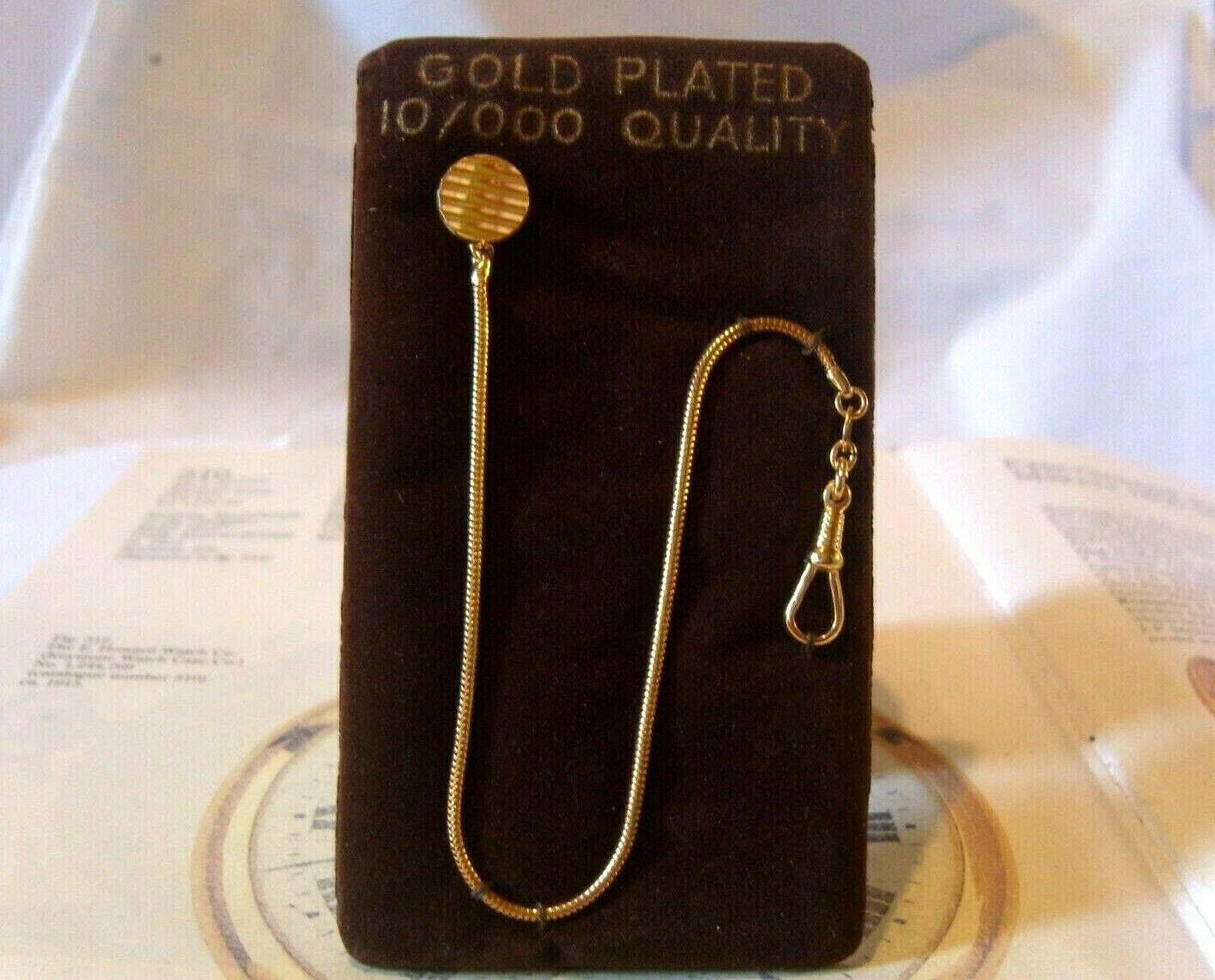 Vintage Pocket Watch Chain 1970s 12ct Gold Plated with Ornate Button Fob Nos