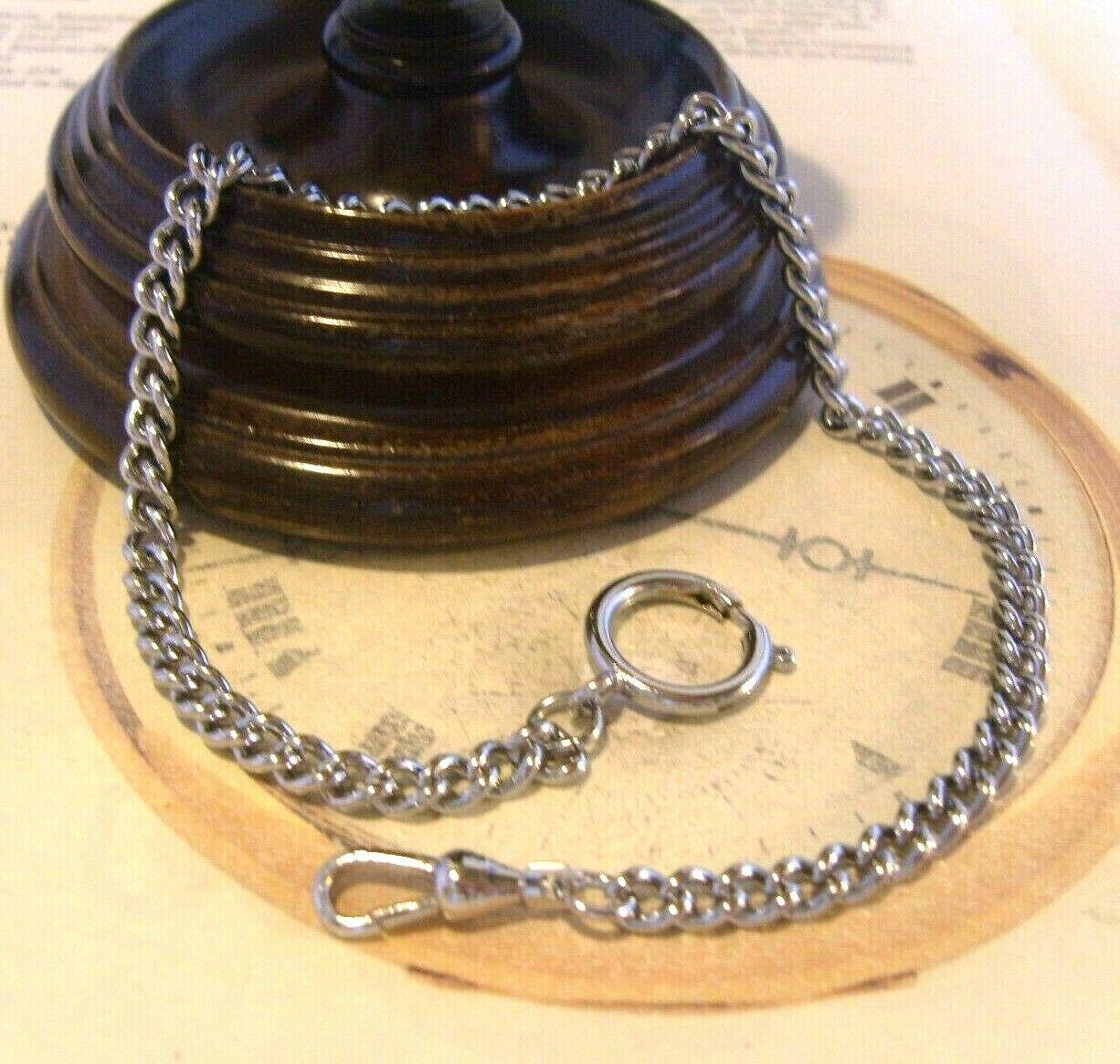 Vintage Pocket Watch Chain 1970s Silver Chrome Curb Link Albert With Bolt Ring Nos