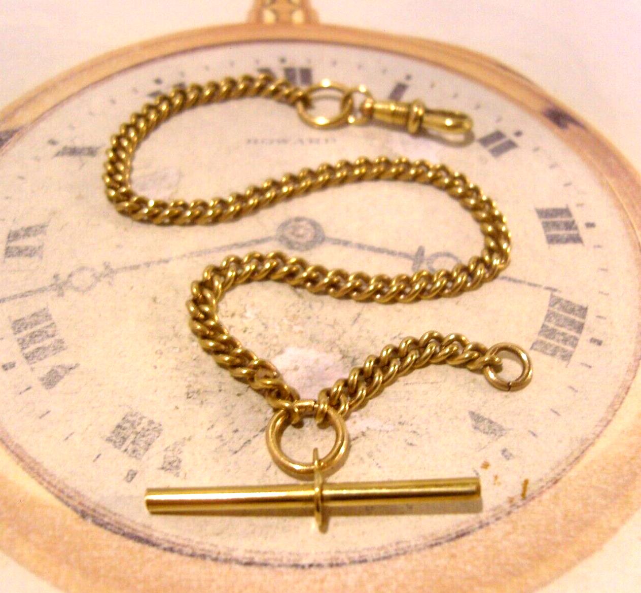 Vintage Pocket Watch Chain 1970s Traditional Brass Curb Link Albert With T Bar