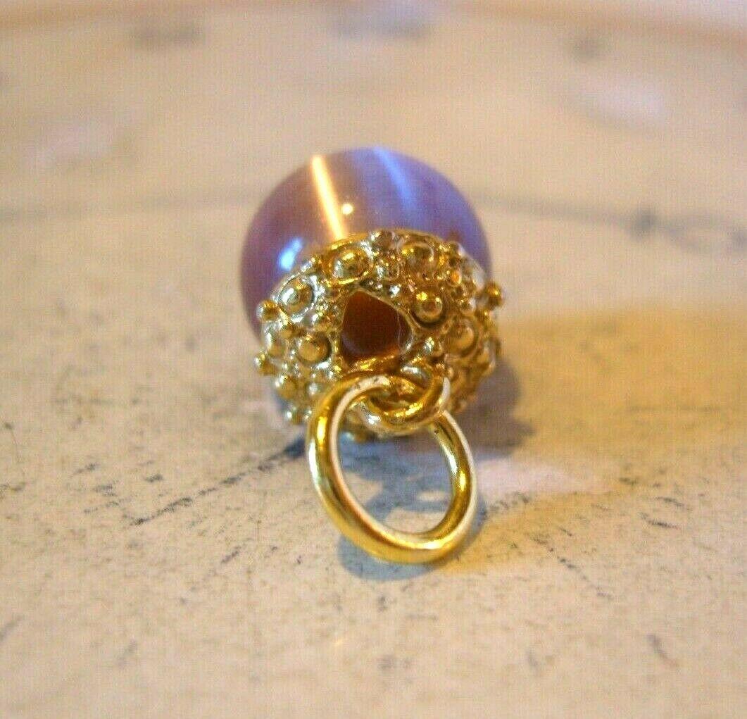 Vintage Pocket Watch Chain Ball Fob 1950s Golden Gilt & Glass Moonstone Heart Fob