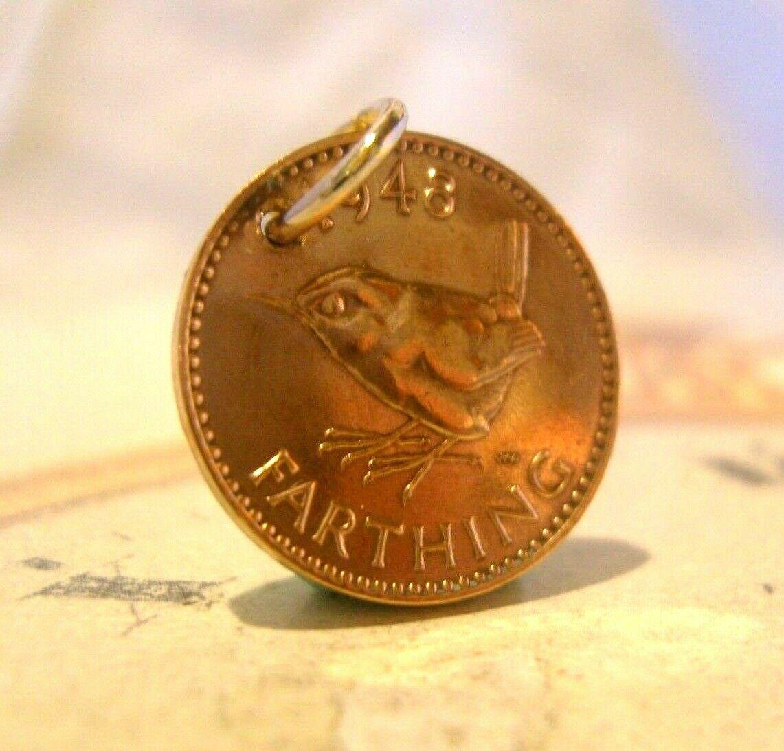 Vintage Pocket Watch Chain Farthing Fob 1948 English Old Coin Fob