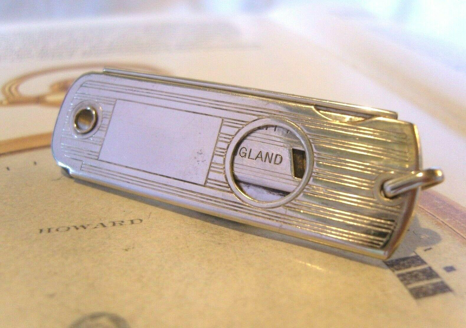 Vintage Pocket Watch Chain Fob 1930s Large Silver Chrome Valet Cigar Cutter Fob