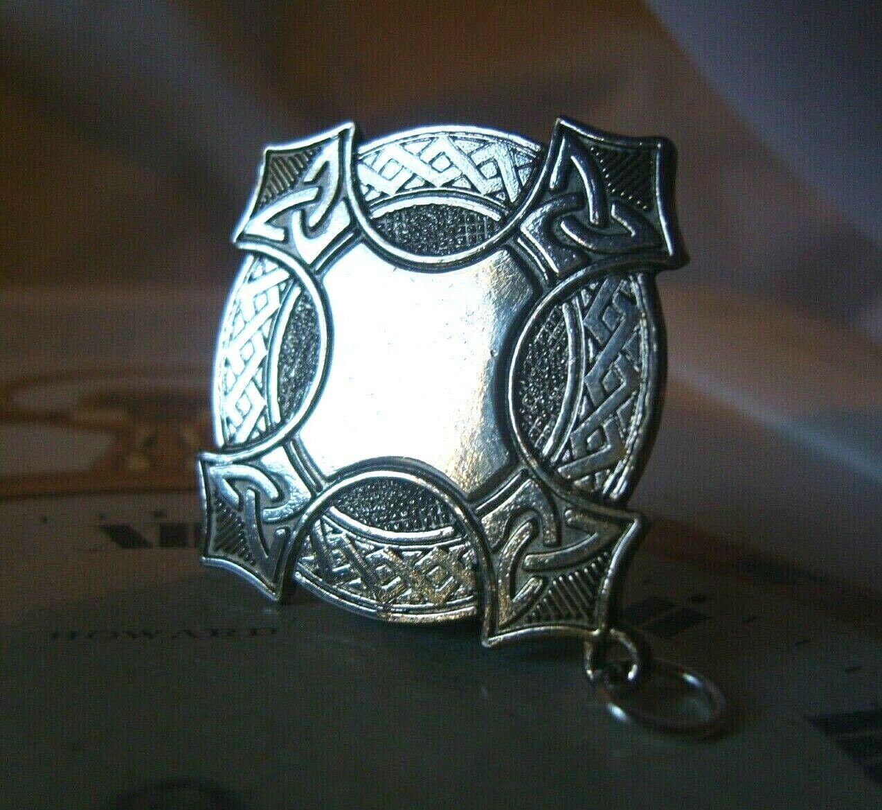 Vintage Pocket Watch Chain Fob 1940s Large Silver Chrome Celtic Shield Fob Nos