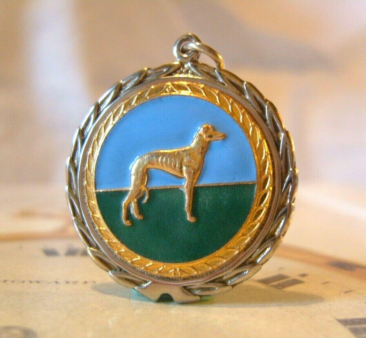 Vintage Pocket Watch Chain Fob 1940s Silver Chrome & Enamel Greyhound Dog Nos