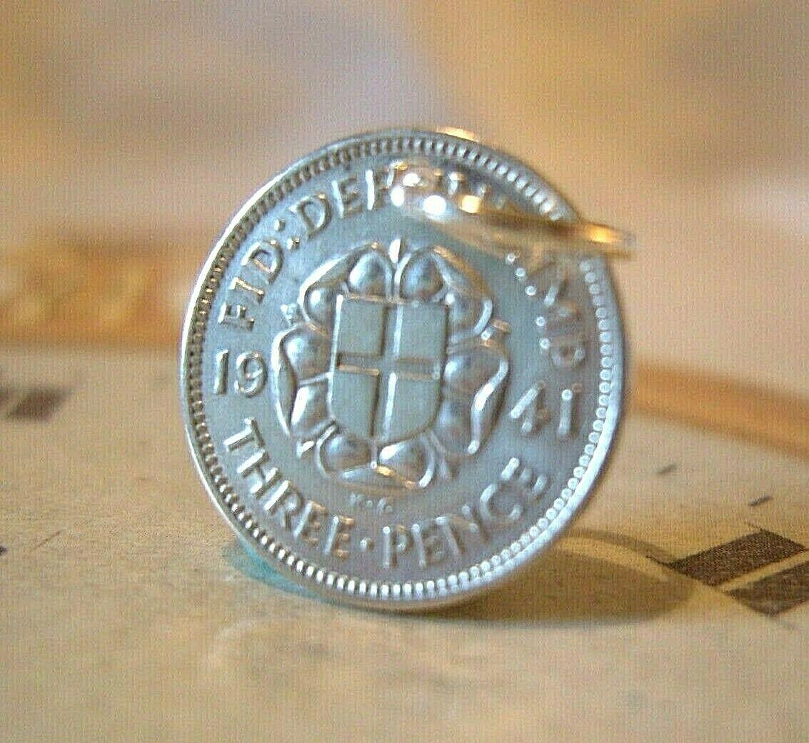 Vintage Pocket Watch Chain Fob 1941 WW2 Lucky Silver Three Pence Old 3d Coin Fob