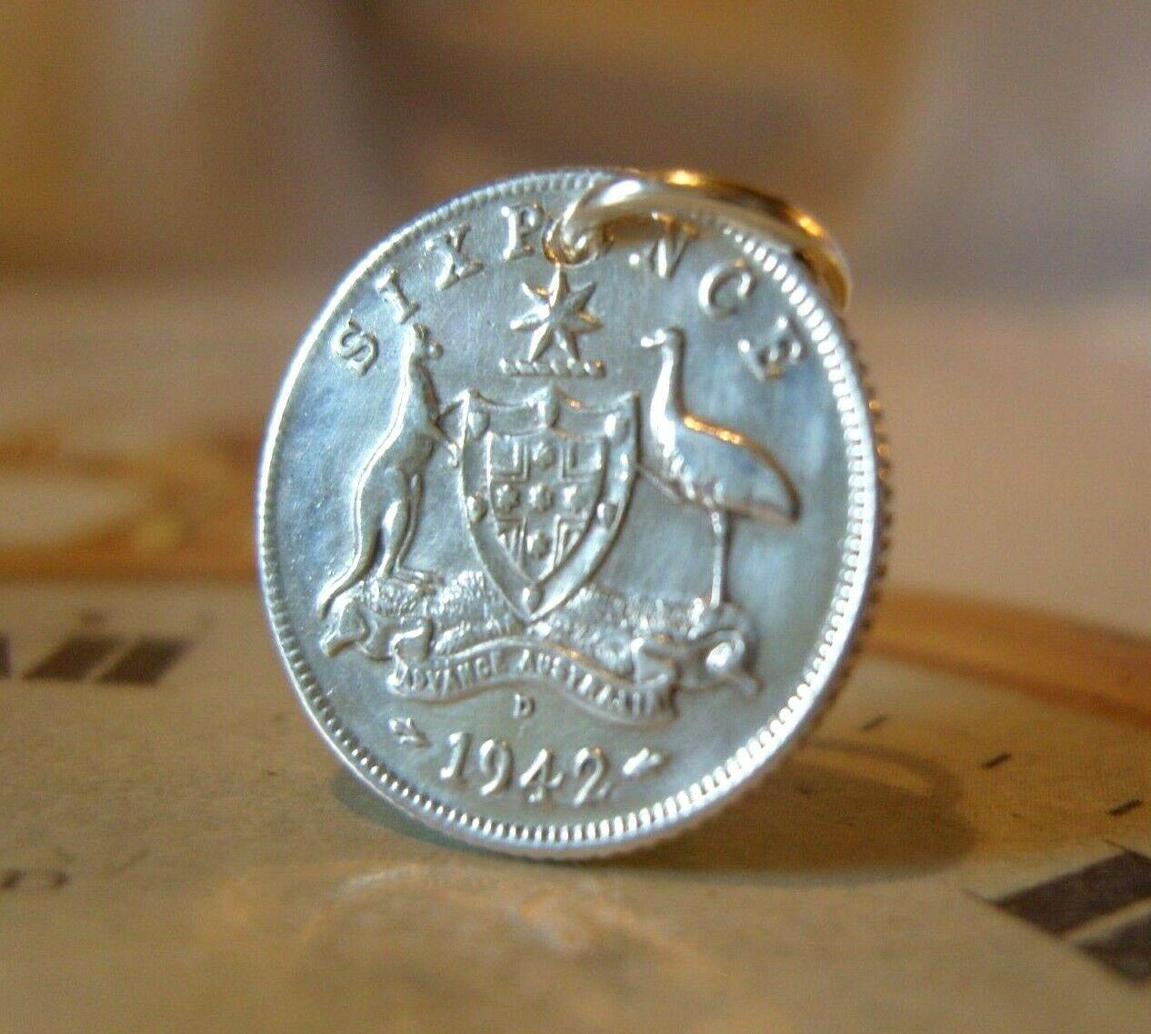Vintage Pocket Watch Chain Fob 1942 WW2 Australian Silver Sixpence Coin Fob