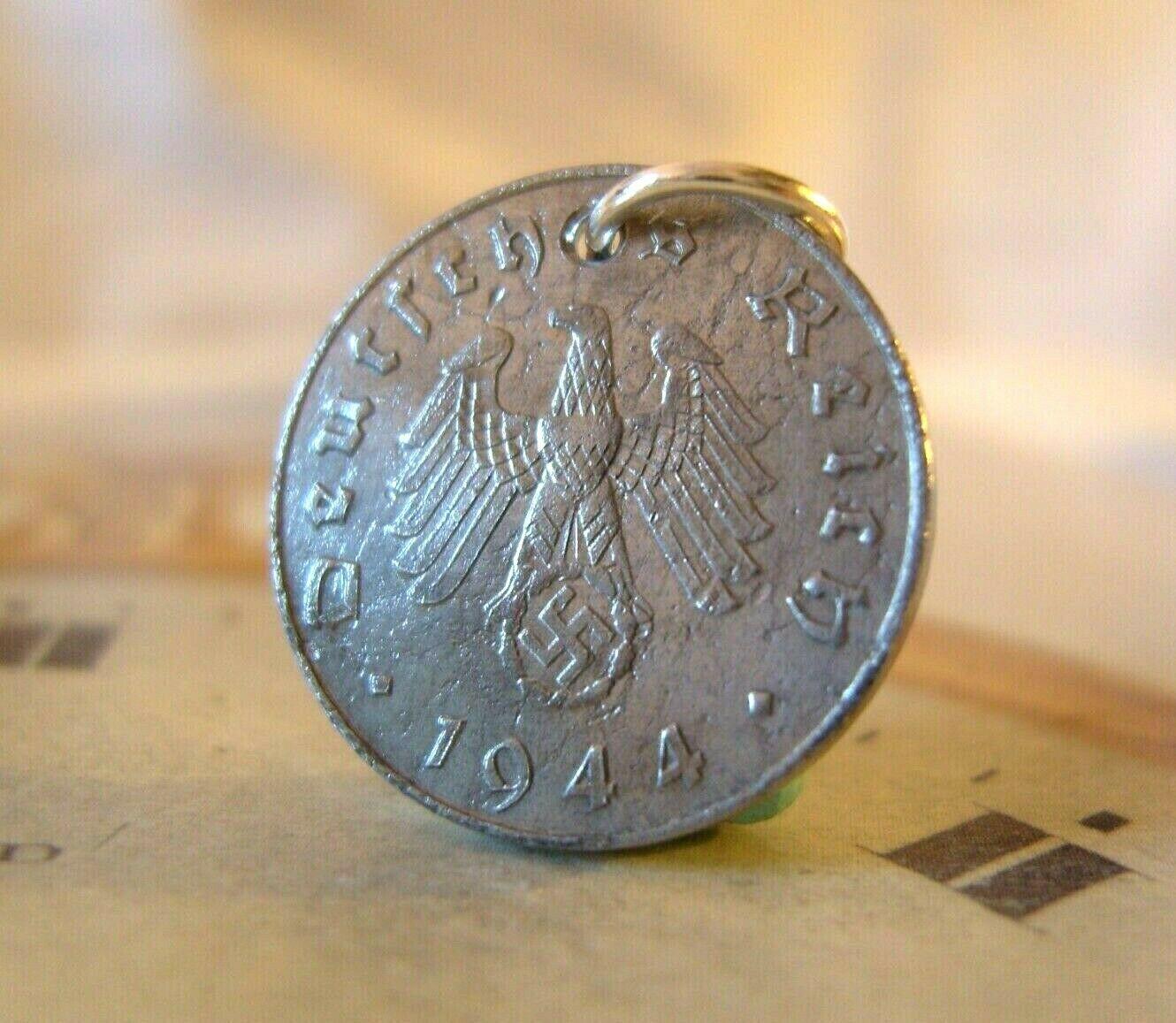 Vintage Pocket Watch Chain Fob 1944 WW2 German Reich 10 Pfennig Eagle Coin Fob