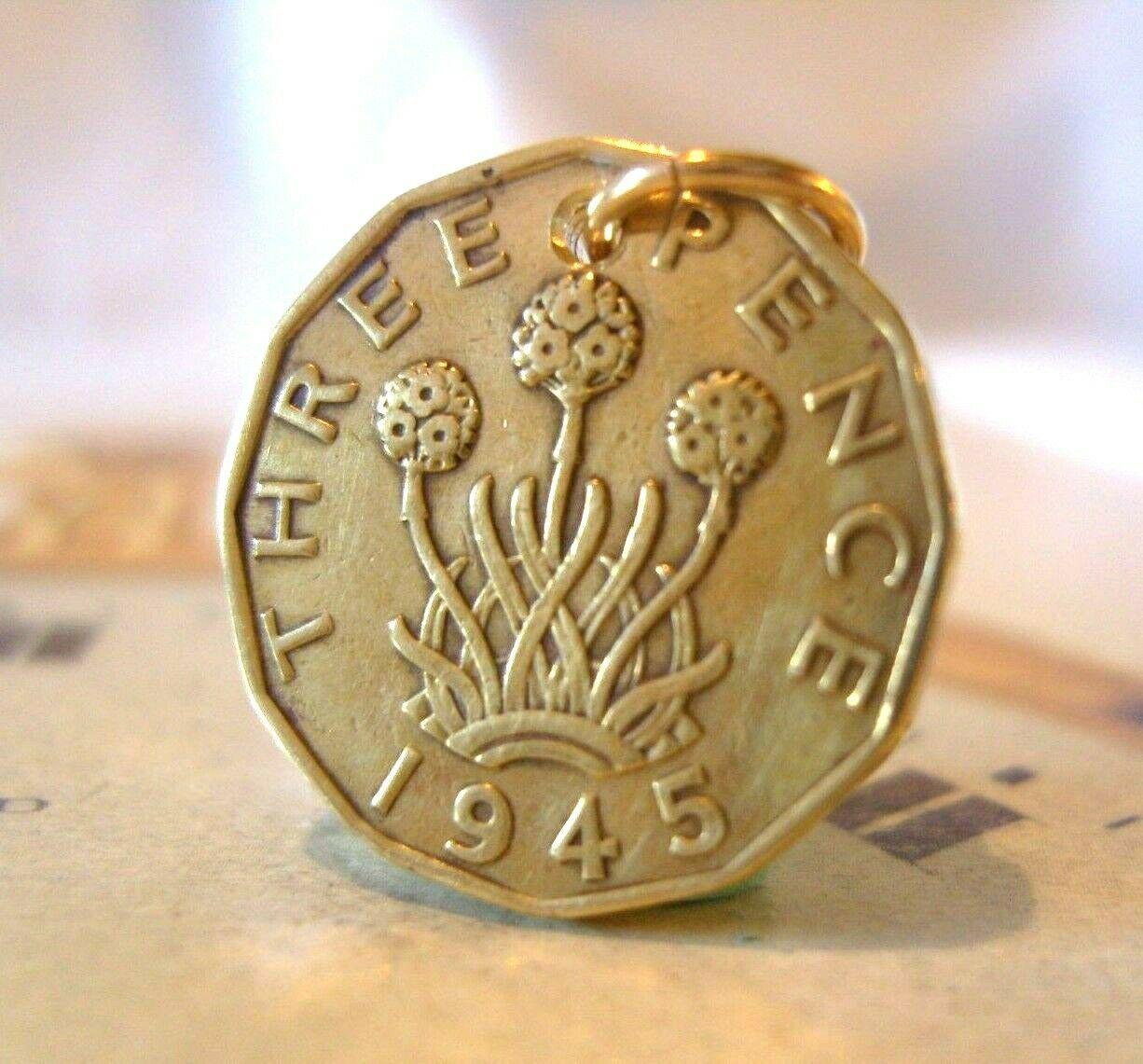 Vintage Pocket Watch Chain Fob 1945 WW2 King George V1 Threpenny Bit Coin Fob