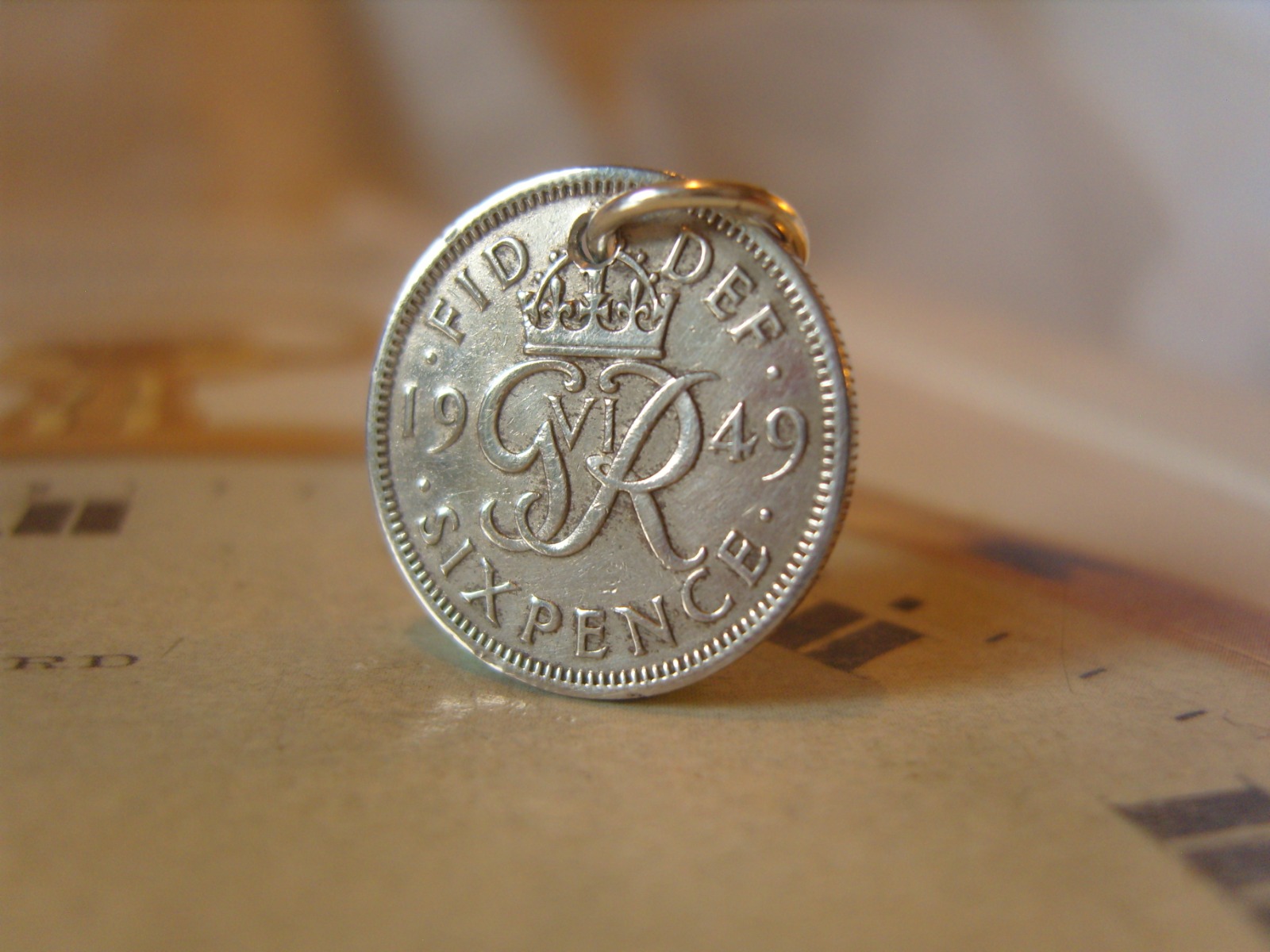 Vintage Pocket Watch Chain Fob 1949 Lucky Silver Sixpence 6D Coin Fob