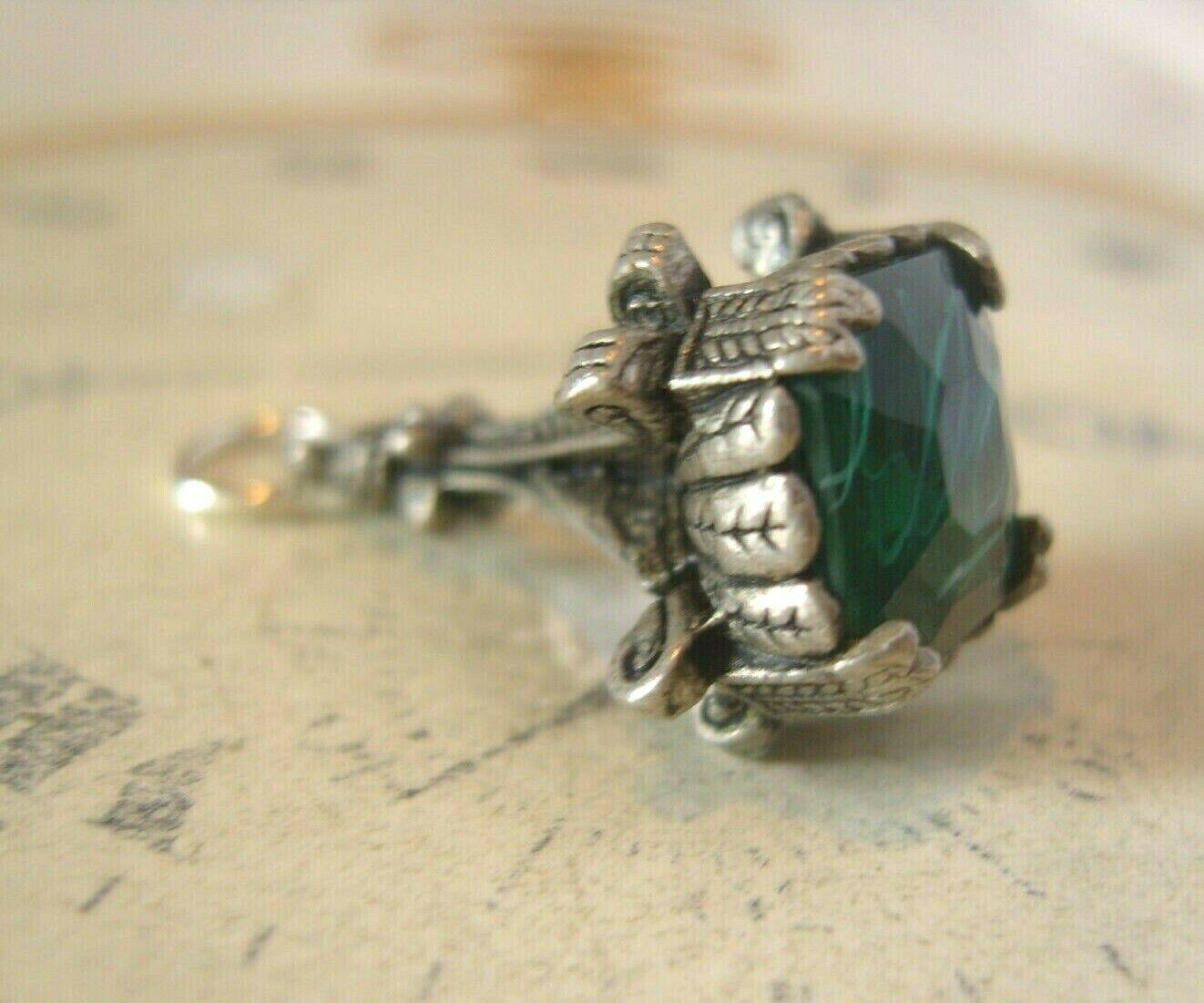 Vintage Pocket Watch Chain Fob 1950 Large Silver Nickel & Green Stone Victorian Revival Fob