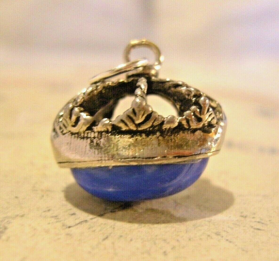 Vintage Pocket Watch Chain Fob 1950s Large Victorian Style Silver Chrome & Blue Stone Crown Fob