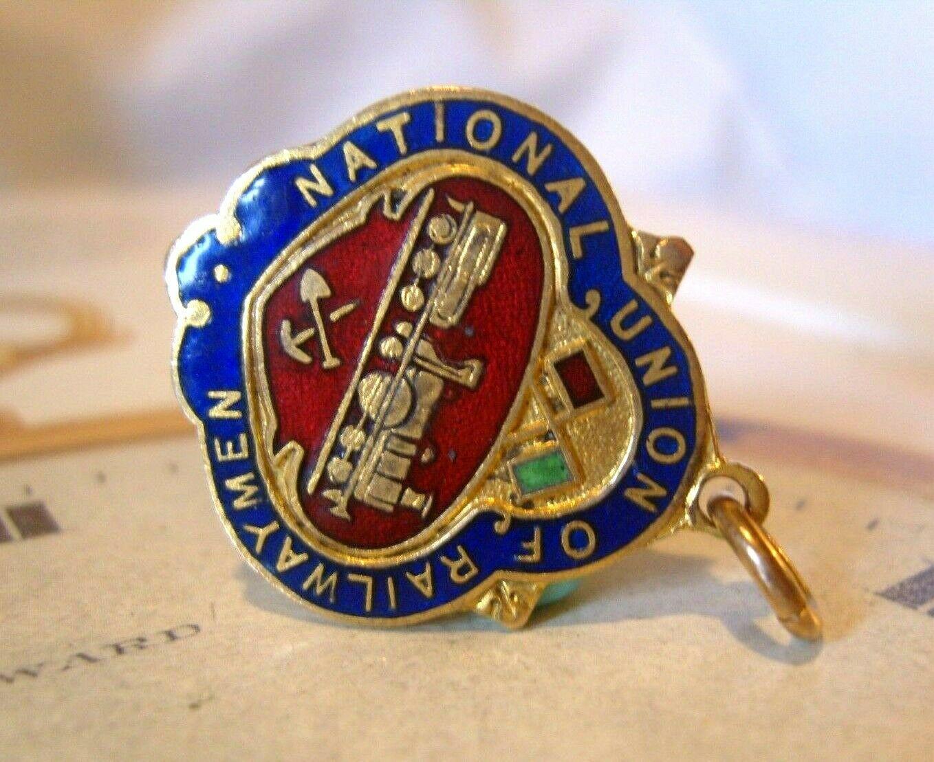 Vintage Pocket Watch Chain Fob 1950s Railwaymen Golden Gilt & Enamel Fob