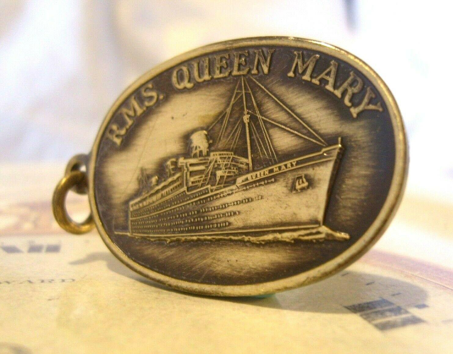 Vintage Pocket Watch Chain Fob 1950s Rms Queen Mary Ships Brass Propeller Fob
