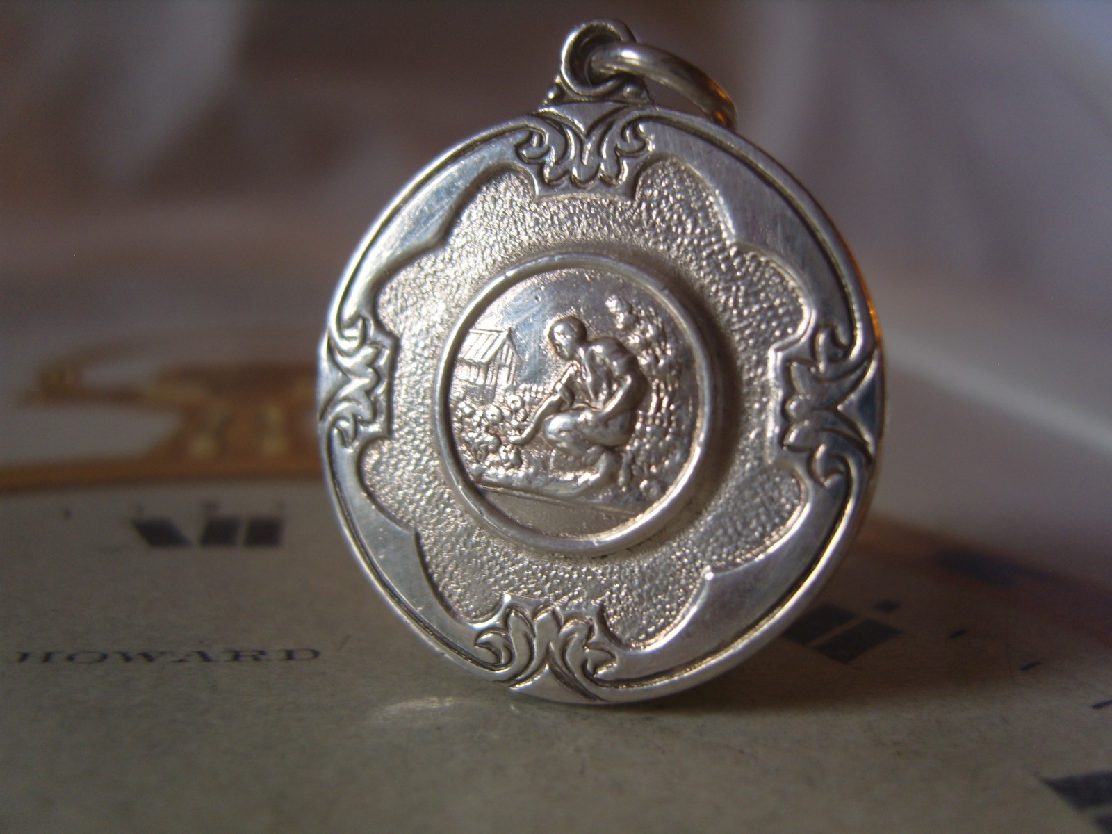Vintage Pocket Watch Chain Fob 1950s Silver Chrome Large Gardening Allotment Fob Nos
