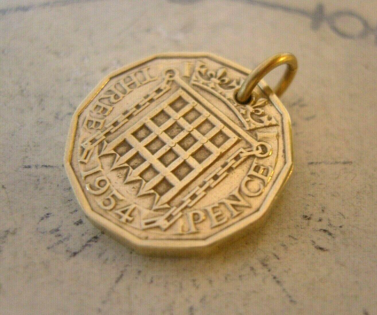 Vintage Pocket Watch Chain Fob 1954 Queen Elizabeth Threepenny 3d Coin Fob